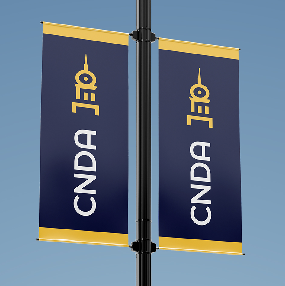 Pour le CNDA, Duo intervient depuis 2023 comme partenaire d’affichage et de production. À partir d’une identité visuelle déjà définie, notre rôle a été de traduire le design en applications concrètes, visibles et efficaces sur le terrain.