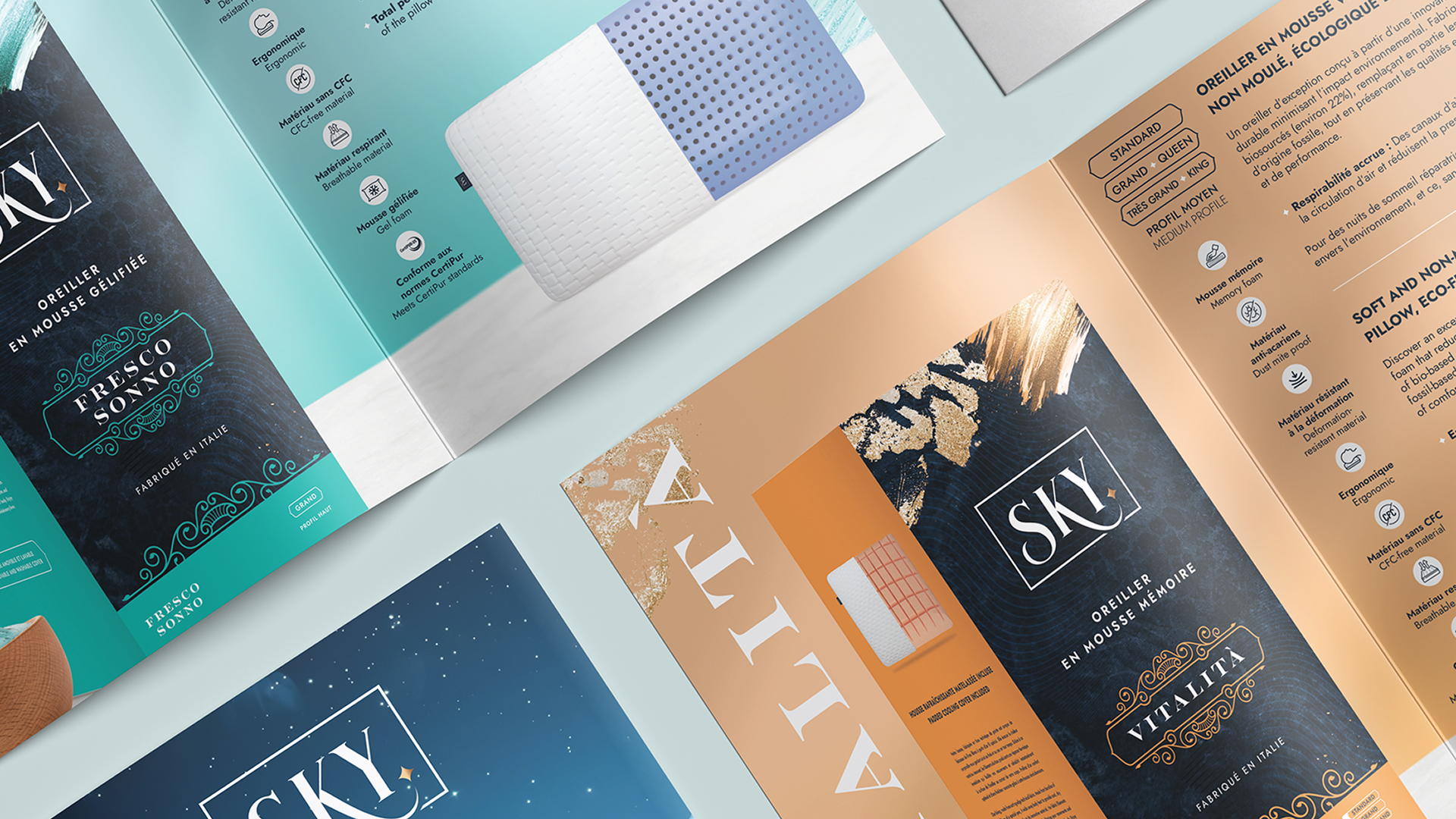 Depuis 2021, Duo accompagne Oreillers SKY dans le développement de son image et de ses outils de communication, après avoir collaboré sur d’autres projets dès 2020 avec Rocket RSS.
